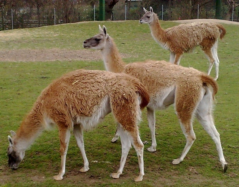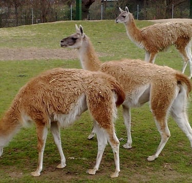 Alpacas are a domesticated member of the camel (camelid) family. The camelid family also includes llamas, guanacos, and vicunas from South America, and the Bactrian and Dromedary camels from Asia and Africa. This family of animals originated on the plains of North America about 10 million years ago. A common ancestor to the South American camelids migrated to South America about 2.5 million years ago. Two wild species, vicunas and guanacos, emerged. They still live in the Andes. It is believed that about 6,000 years ago alpacas were created through selective breeding which was heavily influenced by the vicuna. There are similarities in size, fiber, and dentition (teeth) between the alpaca and the wild vicuna.
