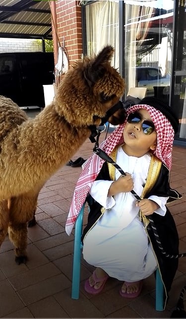 We can be at your venue whenever you like, simply tell us when you would like the animals to arrive! We will set up our petting pen ready to greet your guests as they arrive. Friends and family will have the unique opportunity to pet and photograph our alpacas. One animal will stay in the petting pen and our handler will lead the others to mingle with your guests. Our alpacas will be on hand for party photos having perfected the alpaca “selfie”